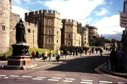 We arrived at Heathrow airport at 7:00AM on May 27. We had initially planned on taking the underground to Paddington Station and then take a train to Oxford. An Underground restriction on toting bicycles eliminated this option. We had two other options, a cab to Paddington Station or a cab to a friend's house in Egham near Heathrow. Subsequently, we found out that bicycles are allowed on the Heathrow Express trains in limited numbers (no more than three during busy times) however, even the train personnel did not seem to know about this. We called our friends, Sharon and Ray, in Egham and they graciously encouraged us to come to their house and start our cycling trip from Egham. A good plan, visit with Sharon and Ray and then cycle to Oxford instead of taking the train. We hailed a cab. "You want to go where? With two bikes? Will this be a cash fare?" Tom hesitatingly replied, "yes." "50 quid" was the response. We couldn't believe our luck! Only five minutes out of the Heathrow Airport, and our first chance to get ripped off! The hack driver's response was that it would take him out of the cue, and nothing less would be worth his while. Besides, nobody else was going to do it. We were somewhat distressed at the prospect of spending the equivalent of $115 Canadian (at the time) to travel less than 10 kilometers to Egham. Cycling to Egham would have been easy, except we did not have a detailed map of the area, so had no idea how to get to there. And we were also very hesitant about cycling out of the airport. So we agreed to the rip-off and were in Egham at Sharon and Ray's house within 30 minutes. Sharon and Ray had recently moved from our hometown of London, Ontario to England. They were members of our local cycling club and so it was very exciting to reconnect with them and to catch up our their new experiences in England. After coffee and gossip we donned our cycling gear, assembled our bikes, loaded our panniers and the four of us headed off to Windsor. We connected to a cycling route from London to Oxford and soon entered the gated Windsor Great Park. This large park houses both the Queen Mother's residence and Windsor Castle. Enroute we passed a very impressive tree lined promenade that extended for a mile through the park towards Windsor Castle.