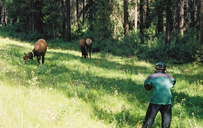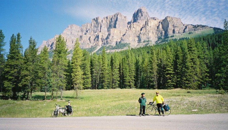 We rode out of town via the Trans - Canada Highway, connecting with the Bow Valley Parkway. On the outskirts of town we rode over steel grates similar to Texas cattle grates. These were treacherous to cross on bikes, and I dont recommend riding over them, especially if they are wet! Bow Valley Parkway is a very palatial road, with little traffic. It had no shoulders, but we found they werent necessary. Every kilometre or so, there were areas where we could pull off the main road to view the scenery or take a rest. This route was very scenic, especially in the area close to Castle Mountain. Just before Castle Mountain we came upon a few cars parked beside the road. Our first "wildlife" - a trio of elk was grazing at roadside. They were not intimidated at all by either the slowly passing traffic, or by us taking pictures from our bikes. We could see Castle Mountain from a distance looming on the horizon. We recognized it immediately just based upon descriptions we had from various guide books. In a clearing, we found a spot to take some nice pictures. Afterwards, there was a rather large downhill. I traversed this area first, and waited for the rest of the "crew" to arrive. After a few minutes, Paul arrived. But alas, there was no Tom. We waited several minutes for him to arrive to no avail. We decided to go back and look for him, fearing him may have fallen on the steep downhill, or had a mechanical problem. Back we climbed for four kilometres, and we finally saw him coming down the hill. He explained that at the last stop a tie from his pannier had wrapped itself around his front rim, effectively stopping movement of any kind. We shuddered when we considered the effect this might have had on this steep downhill portion! The distance covered today was 79.2 km, in 4 hours, 12 minutes, for an average speed of 18.8 kph. This speed reflects a steep 4 km section up to the actual lake above the townsite of Lake Louise. I estimate we climbed about 1400 feet or more in this short distance. We enjoyed bright sunshine today, with no wind. It had clouded over by the time we arrived in Lake Louise. Our park pass was inspected for the first time since entering the park, and we were informed by the attendant that a grizzly bear had been spotted the day before crossing the road 100 metres from the gatehouse. We did not encounter any bears today, but we did manage to photograph a couple of elk, and we spotted a deer in the woods. At the hostel we met four American cyclists - Joe and Gerard, and their wives, who were going to be riding the Icefield Parkway southbound from Jasper. Graciously, they offered to bring some food up to the next two "wilderness" hostels for us. Paul and I quickly made a dash for the supermarket to rapidly collect some food staples, and a bottle of Merlot wine our prize upon arrival at Beauty Creek. The Lake Louise Hostel was very nice close to hotel standards. The rooms held two bunk beds, and each room had its own toilet and sink. Showers were right outside the door, and it appeared we shared the shower with only one or two other rooms. The price was $30.67 apiece, inclusive of taxes.